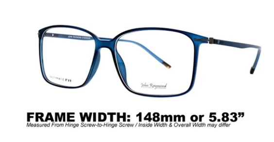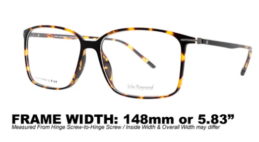 Frame Width: 148mm (5.83in)Size: 60-16-150Lens Height: 46mmAvailable Frame Colors: Black, Blue, TortoiseLens Color: naLens Type: naSpring Temple Hinges: NoAdjustable Nose Pads: NoWarranty: ...